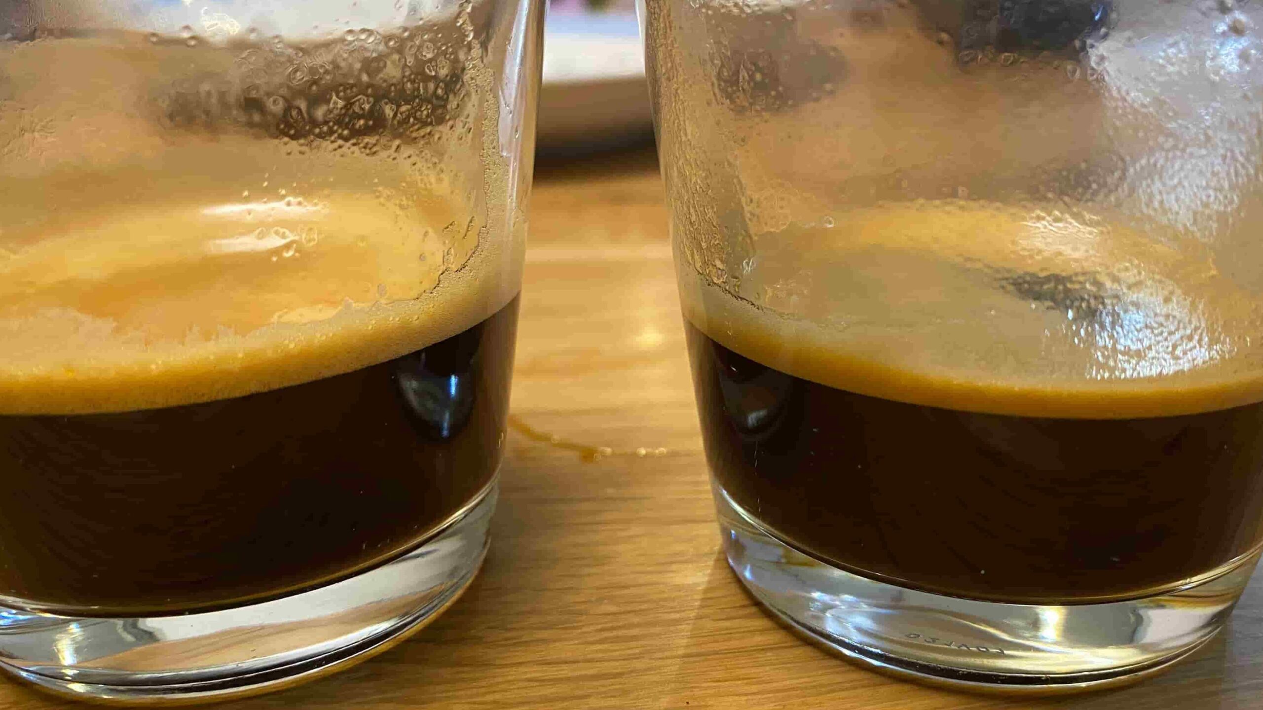 入れてから少し時間が経ってから撮ってみましたが、クレマ増幅弁がある方がクレマ(泡)が多く残っていました。